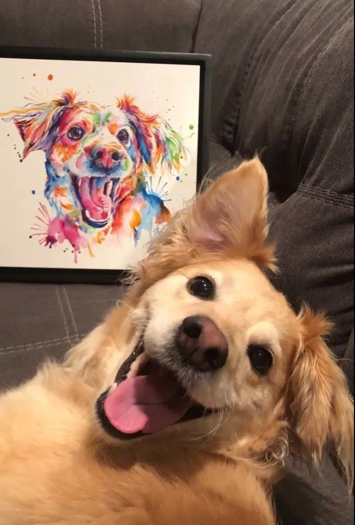 我把我家狗狗畫了下來,看得出它很滿意。